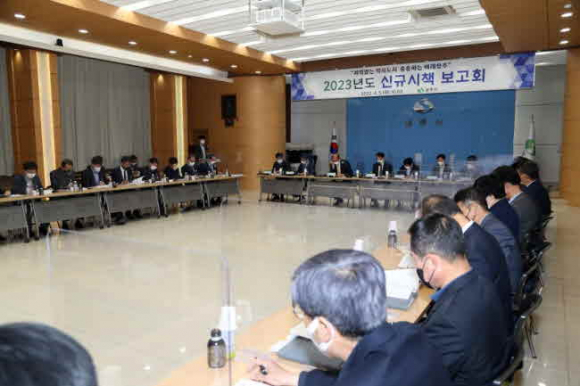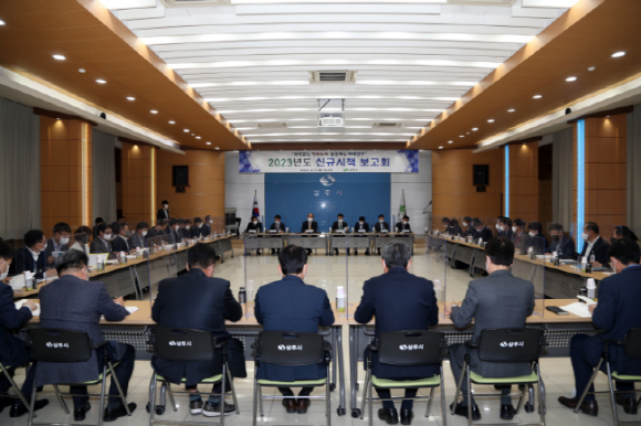 상주시(시장 강영석)는 중흥하는 미래상주 건설을 위해 지난 4월 5일, 시청 대회의실에서 강영석 상주시장 주재로‘2023년도 신규시책 보고회’를 개최하였다. 이날 보고회에는 부시장 및 국․소장, 35개 부서장이 참석한 가운데 신규시책 91건(신규83, 제안8)에 대해 추진방향과 계획, 타당성 등을 공유하고 논의하였다. 주요시책으로는 ▲메타버스 복합체험센터 조성 ▲상주형 메타버스 서비스 발굴 ▲임대형 스마트팜 2단지 조성 ▲국도25호선 상주(무양~화남 평온) 건설 ▲빈집정비 주거 플랫폼 개발 등 국․도비 투자와 아이디어성 사업들이다.