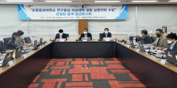 포항시는 10일 포스텍 본관 대회의실에서 경북도, 포스텍 관계자 등 30여명이 참석한 가운데 ‘포스텍 연구중심 의과대학 설립 실행전략수립 용역’ 중간보고회를 개최했다.