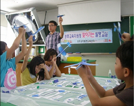 이번 찾아가는 발명교실에서는 『위대한 발명가들』이라는 주제를 통해서 발명이론을 학습했으며 『거북선 만들기』를 통해 간단한 목공예 활동을, 『종이 글라이더 만들기』 활동으로 기초적인 비행원리를 이해하는 등 창의적인 공작의 시간을 가졌다.