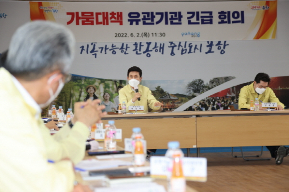 이강덕 포항시장은 2일 대송면행정복지센터에서 가뭄피해 예방을 위한 종합대책 긴급회의를 개최하면서 업무 복귀를 시작했다.