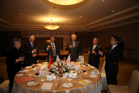 □ 한국 측 정구종 한중일 문화교류포럼 위원장, 동서대 석좌교수 공로명 한중일 문화교류포럼 위원, 전 외교부장관, 전 주일대사 권병현 한중일 문화교류포럼 위원, 한중문화청소년미래숲센터 대표, 전 주중대사 이원태 한중일 문화교류포럼 위원, 한중우호협회 부회장, 대한통운 대표이사 사장 이강민 한중일 문화교류포럼 사무국장, 한양대 교수 서현재 한중우호협회 사무국장 조유정 한중일 문화교류포럼 사무국원 최정필 세종대 박문관장(강연자)