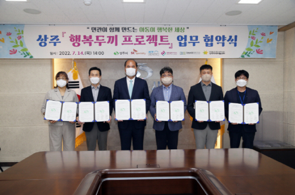 상주시는 7월 14일, 시청 소회의실에서 SK스페셜티, 에이스나노켐, 행복얼라이언스, 강북희망협동조합, 상주지역자활센터와 함께 결식 우려 아동 문제의 선제적 해결을 위한 <행복두끼 프로젝트> 업무협을 체결하였다. 이번 협약체결을 통해 올해 9월에서 2023년 2월까지 6개월간 아동 56여 명에게 1주일 5식 기준 132일 분의 도시락이 지원될 예정이다. 협약에 따라 시는 대상자 발굴, 행정지원 등 발굴된 아동을 지속적으로 지원하기 위해 노력하고, 협약체결 기관 중 사회공헌 네트워크 행복얼라이언스와 멤버사 SK스페셜티, 에이스나노켐은 기부금을 통한 급식 공급 사업비를 마련하며, 강북희망협동조합은 도시락 제조, 상주지역자활센터는 도시락 배달 등 각자의 역할을 수행하게 된다. 조민영 행복얼라이언스(행복나래(주)) 본부장은 "지방정부와 지역에 자리한 기업이 유기적으로 협력해 상주시 관내 결식우려아동을 도울 수 있게 돼 뜻깊다.”라며, “앞으로도 행복얼라이언스는 보살핌을 받지 못하는 결식우려아동이 없도록 전국 229개 지자체와의 협력을 목표로 보다 촘촘한 사회 안전망을 구축할 계획”이라고 말했다.
