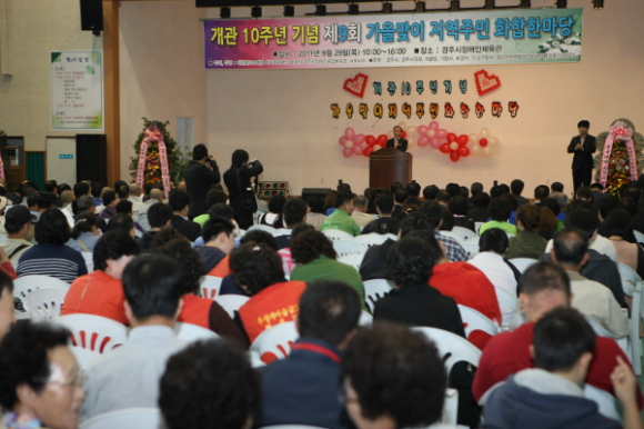 경주시장애인종합복지관은 29일 경주시장애인체육관에서 개관 10주년기념을 축하하기 위해 지역장애인, 후원자, 자원봉사자, 지역주민을 초청해 지역주민화합한마당의 자리를 가졌다.