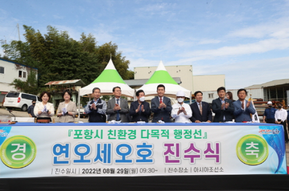 포항시는 신규 프로젝트인 다목적 행정선 ‘연오세오호’가 기초공사를 마무리하고, 29일 경남 거제시 소재 ㈜아시아조선에서 진수식을 개최했다고 밝혔다.
