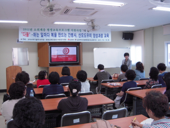 부곡사회복지관에서는 교육과학기술부, 평생교육진흥원이 지원하고 김천시가 운영주체로 실시하는 2011년 소외계층 평생교육프로그램 시행기관으로서 다 올-두번째 교육인 산모도우미 양성교육 첫 강의를 진행했다.