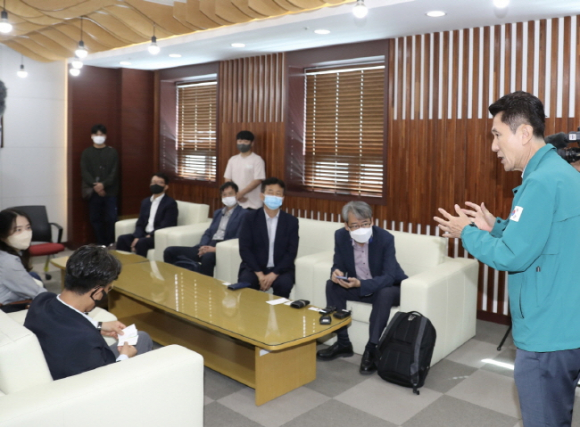 이날 산업통상자원부와 산업연구원, 관계부처 관계자들로 구성된 합동실사단은 포항시청을 방문해 손정호 포항시 일자리경제국장으로부터 ‘산업위기 선제대응지역 지정 필요성’에 대한 설명을 들은 후 토론시간을 갖고 의견을 나눴다.