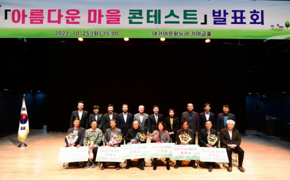 고령군 I LOVE 대가야고령 추진위원회(공동위원장 이남철)는 올해로 2회째를 맞이하는 『아름다운 마을 콘테스트』 발표회를 10. 25.(화) 15시, 대가야문화누리 가야금홀에서 개최했다.