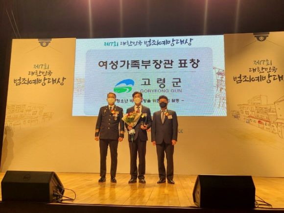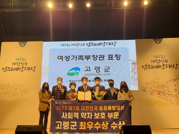 고령군(군수 이남철)은 제7회 대한민국 범죄예방대상 시상식에서 사회적 약자 보호 부문에서 최우수상(여성가족부장관상)을 수상했다.