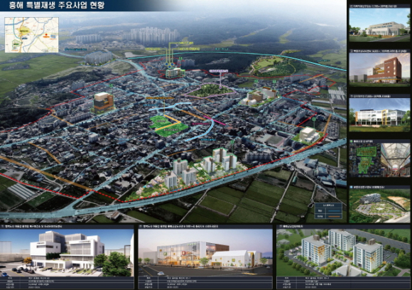 포항시 지진특별지원단에서 추진하는 ‘흥해 특별도시재생사업’은 도시재생 활성화 및 지원에 관한 특별법에 따라 흥해 일원 123만㎡를 특별재생지역으로 지정해 마중물, 부처 연계, 지자체, 공기업 참여사업 등 총 30개 단위사업에 국비, 지방비 2,896억 원이 투입되는 대규모 투자 사업이다.