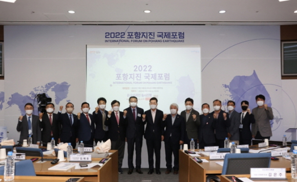 포항촉발지진 발생 5주년을 맞아 14일 포스코국제관 대회의실에서 ‘2022 포항지진 국제포럼’이 온·오프라인으로 개최됐다.