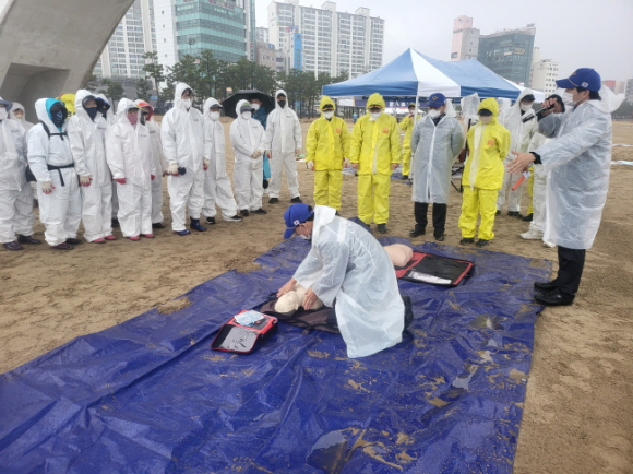 특히, 이번 훈련에서는 ▲오염조사·평가 ▲통제구역 설정 ▲중장비 이용 방제 ▲인력수거 방제 ▲야생동물구호 ▲기계적 방제 ▲응급환자대응·이송 ▲폐기물 처리 등 실제상황을 가상하여 실시하였다.