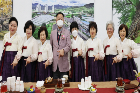 | ↑↑ 김재욱 칠곡군수가 주민들과 함께 럭키 칠곡포즈로 기념 촬영을 하고 있다 |