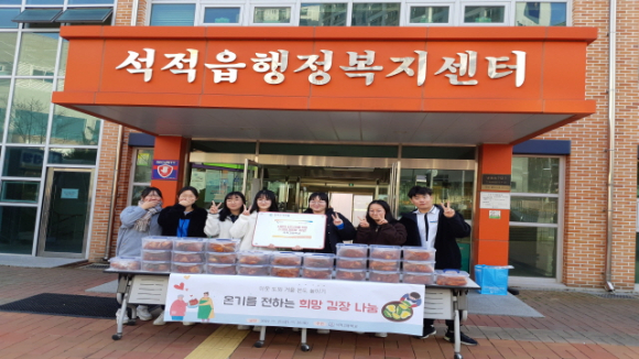 석적고등학교 RCY 동아리 학생들이 지난 25일 본교에서 김장김치 26포기를 직접 담가 이를 칠곡군 석적읍행정복지센터에 전달했다. 학생들은 배춧잎 한 장 한 장에 양념을 바르며, 소외되고 어려운 이웃들에게 김장을 나눠줄 수 있다는 뿌듯한 마음으로 최선을 다해 김장 만들기 활동에 참여했다.