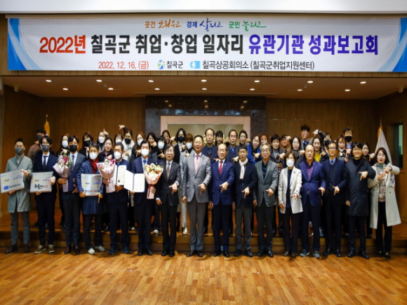 칠곡군은 지난 16일 칠곡상공회의소 대강당에서 취·창업 유관기관 관계자 등 60여 명이 참석한 가운데 ‘2022년 일자리 성과보고회’를 가졌다.