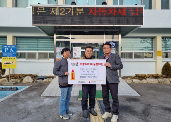 ㈜케이지건설 서광일 대표는 12월 27일 금수면사무소를 방문해 『희망2023 나눔캠페인』에 성금 1백만원을 기탁했다.