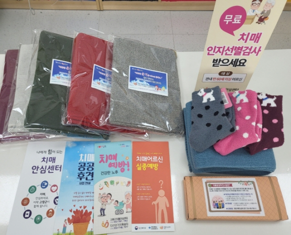 겨울나기 물품은 “따뜻한 온기를 나누고 둘러요” 란 슬로건으로 등록된 치매환자와 돌봄 부양부담으로 힘든 가족들을 대상으로 보온 유지에 도움이 되는 니트 머플러와 수면양말, 앞치마 등으로 구성해 제공되며 한랭질환 예방수칙 교육도 함께 실시하고 있다.