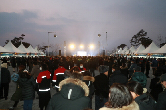 예천군(군수 김학동)은 1일 오전 6시 30분 군청 광장에서 예천청년회의소(회장 김명준) 주관으로 군민 화합과 안녕을 기원하는 해맞이 행사를 진행했다. 이날 김학동 예천군수, 최병욱 예천군의회 의장, 도기욱 경상북도의회 의원, 김말수 예천경찰서장, 권혜자 예천교육지원청 교육장, 김난희 예천소방서장 등 주요 인사들과 군민 1천여 명이 참여했으며 이철우 경상북도지사와 김형동 국회의원은 영상으로 새해 인사를 대신했다. 이어 팝페라와 활춤 공연을 시작으로 행사장 내에서는 떡국‧차 나눔, 검은토끼와 함께 사진찍기, 소망지 작성, 복주머니 나눔 행사 등 다양하게 진행됐다. 새해 소망을 비려는 인파가 인산인해를 이루자 군은 안전요원 80여명을 곳곳에 배치해 안전관리를 강화했으며 그 결과 단 1건의 사고 없이 행사를 마무리할 수 있었다.