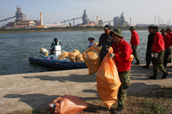 이날 정화활동에서 참가자들은 형산강 하구에서 포항 제철소까지 모두 4개 구간으로 나눠 강변일대에 버려진 쓰레기를 수거했다.