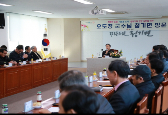 영양군(군수 오도창)은 2023년 계묘년 새해를 맞이하여 1월 30일부터 3일간 영양읍을 시작으로 6개 읍·면을 순차적으로 방문했다. 이번 방문은 영양군의 군정방침인‘동심만리(同心萬里)’를 실현하기 위해 각 읍․면의 이장 및 기관단체장 등 군민대표에게 군정운영 계획을 설명했다. 읍면방문을 통한 군정설명은 지난 민선 7기 주요성과 설명과 영양군의 지속가능한 발전과 미래경쟁력 확보를 위한 민선 8기 주요 추진 정책을 오도창 군수가 직접 주민들에게 설명하는 자리였다. 민선 8기 주요핵심 추진 분야로 동서남북 어디서나 누구나 쉽게 접근할 수 있는 도로망 확충, 생산에서 판매까지 행정이 책임지는 잘사는 농정기반 마련, 전국 최고의‘생태 브랜드’를 바탕으로 생태관광 메카로 거듭나기 위한 관광인프라 구축을 역점적으로 추진할 계획이라고 밝혔다. 한편 영양군은 이번 방문을 통해 청취한 불편사항을 빠른 시일 내에 해결하고 건의사항은 적극 군정에 반영할 계획이다.