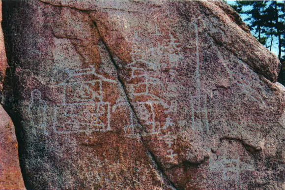 전체크기는 가로 약 1.5m, 세로 약 1m, 사찰과 건물탑, 당간지주, 승상(합장한 모습, 높이 24㎝, 어깨 폭 9㎝) 등이 함께 표현된 암각화는 처음발견 된 것이다.