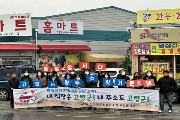 고령군 산림녹지과와 고령군산림조합(조합장 임대성)이 「고령사랑! 주소갖기 운동」릴레이 캠페인에 참석해 2월 13일(월) 아침 8시부터 고령광장 회전교차로에서 실시했다. 이 캠페인은 고령군(군수 이남철)에서 추진하고 있는 5·5·5프로젝트(인구 5만명 도시!, 신규주택 5,000호!, 청년인구 5,000명!) 달성을 위한 릴레이 캠페인의 일환으로 실시했다.