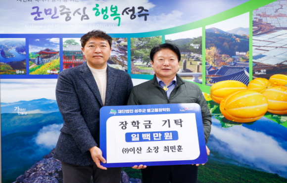 특히 올해는 ㈜이산에 소속된 소장 최민훈(남, 48세)씨도 장학금 100만 원을 별도로 기탁해, 성주군의 인재육성 지원에 큰 힘을 보탰다.
