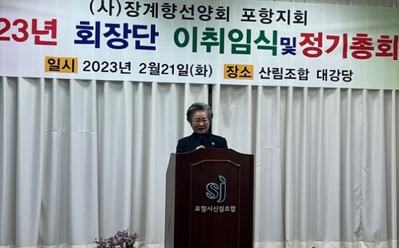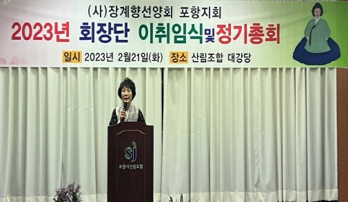 (사)장계향선양회 포항지회 회장 이⦁취임식 및 2023년 정기총회가 21일 낮 12시 30분 포항 산림조합 대강당에서 열렸다.