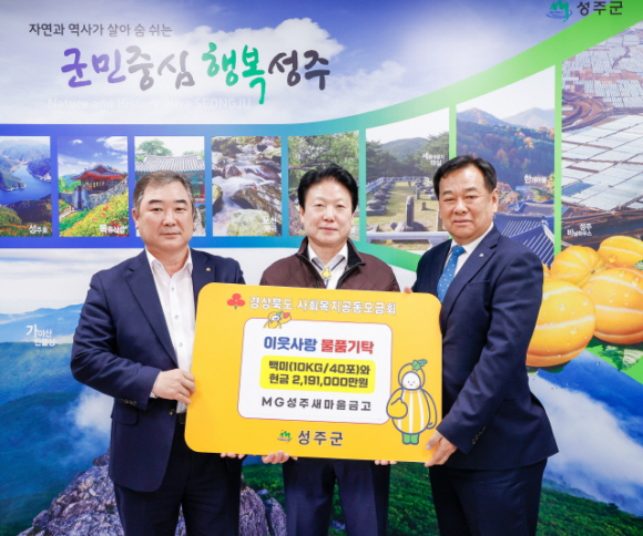 성주새마을금고(이사장 주남식)는 23일 성주군청을 방문해 매년 전국 새마을금고에서 주관하는 사랑의 좀도리운동을 통해 임직원 및 회원들의 정성으로 모은 성금 2,191,000만 원과 백미10kg 40포(110만원 상당)를 기탁했다.