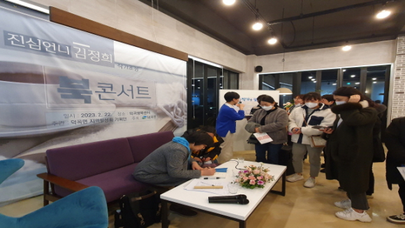 행사가 열린 덕곡행복센터 주민카페 ‘예다원’에는 면에 거주하는 청‧장년을 비롯한 50여 명의 청중들로 밤늦은 시간까지 북적였다.