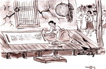 “정월보름 달떡이요, 이월한식 송편이요, 삼월삼짇 쑥떡이로다. 사월팔일 느티떡 오월단오에 수리치떡 유월유두에 밀전병이라, 칠월칠석에 수단이오 팔월가위 오려송편 구월구일 국화떡이라 시월상달 무시루떡 동짓달 새알병요, 섣달에 골무떡이라.”