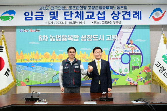 이남철 군수는 “노사는 대립과 갈등의 관계가 아니라 고령군의 발전과 군민의 행복을 위해 함께 노력하는 파트너이며 협력과 배려의 동반자로써 상호 신뢰와 존중을 바탕으로 한 선진적인 노사교섭이 이뤄지길 기대한다”고 말했다.