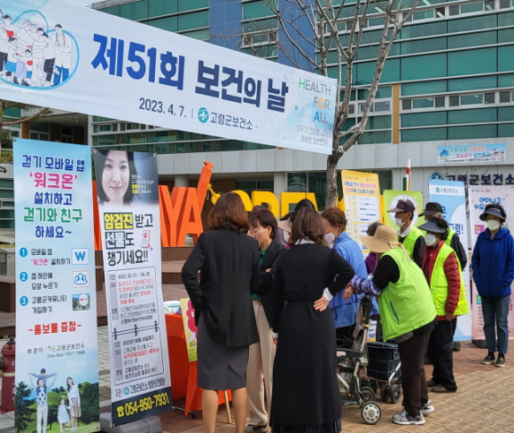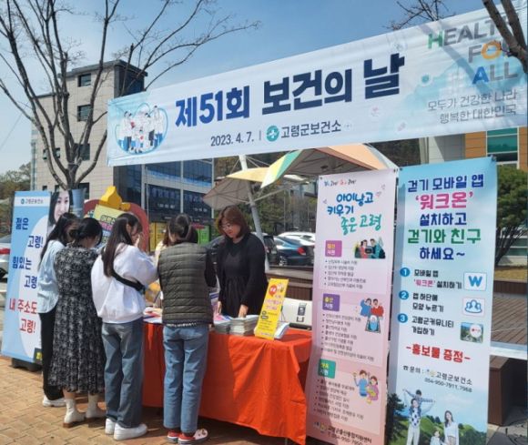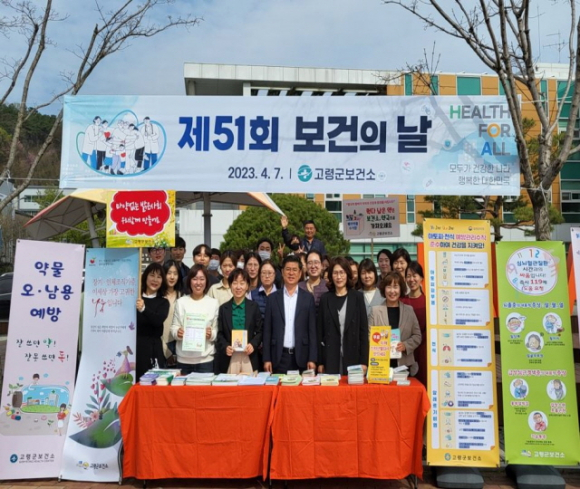 고령군(군수 이남철)은 『제51회 보건의 날(4.7.)』을 맞아 4월 4일 대가야읍 문화의 거리에서 HEALTH FOR ALL(모두가 건강한 나라, 행복한 대한민국)이라는 슬로건 아래 보건사업 홍보를 펼쳤다. 매년 4월 7일은 국가기념일로 지정된 보건의 날이며 주민 건강증진 및 보건의식을 고취시키고자 보건의 날부터 1주일간을(4.7.~4.13.) 건강주간으로 정해 운영하고 있다.