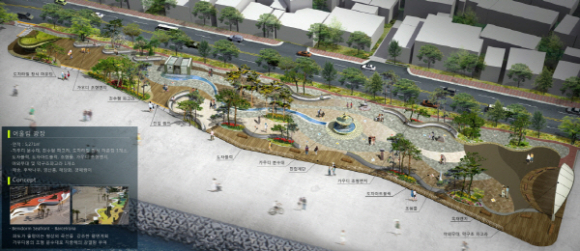 현재까지 기초공사를 마치고 조형벤치 및 분수대 조성, 경관조명 설치 등 전체 75%의 공정율을 나타내고 있으며 앞으로 목재 데크, 조경시설, 바닥 포장공사, 조형물 및 파고라 설치 등을 일정대로 추진해 11월말 작업을 완료할 예정이다.