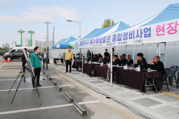 안동시(시장 권기창)는 19일 용상동에서 행정안전부 주관 2024년 재해예방 국가투자 공모사업 대상지 선정을 위한 ‘용상지구 풍수해생활권 종합정비사업’3차 심사인 현장실사를 실시했다.