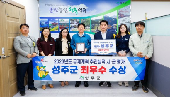 성주군(군수 이병환)은 지난 2일 경상북도가 개최한 2023년 규제개혁 추진실적 평가 시상식에서 ‘최우수상’을 수상하며 도내 군부 2위를 차지했다.