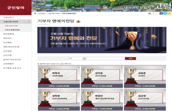 | ↑↑ 고령군, 고향사랑기부제 ‘온라인 명예의전당’ 개설 |