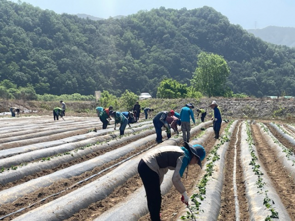 성주군은 5월 23일(화), 메뚜기축제장(수성리 104번지 일원)에 고구마 캐기 영농체험장 조성을 위해 축제추진위원, 공무원, 지역주민 등 30여 명이 모여 고구마 모종 심기를 실시했다.