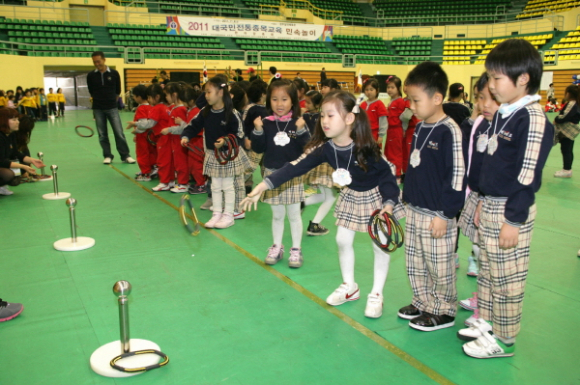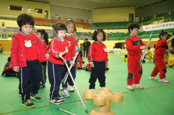 『2011 대국민전통종목교육 민속놀이 한마당 축제』가 국공립, 법인, 민간어린이집 20개소 만5세 어린이 362명과 지도교사 학부모 등 500여명이 참가한 가운데 4일(금) 오전 10시 30분부터 오후 4시까지 경주실내체육관에서 개최됐다.