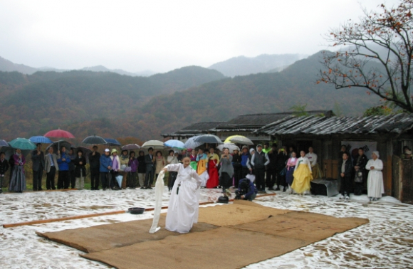 |  | | | ↑↑ 우중에 처마 아래서 관람하는 관객들 | | ⓒ GBN 경북방송 | |