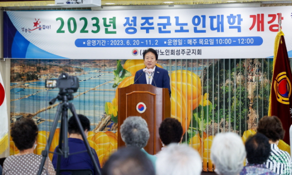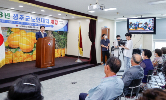 사) 대한노인회 성주군지회는 6월 20일 10시 입학생 70명과 각 경로당에서 스마트 기기를 통해 접속한 300여 회원을 모시고 「2023년 성주군 스마트 노인대학 개강식」을 개최했다.