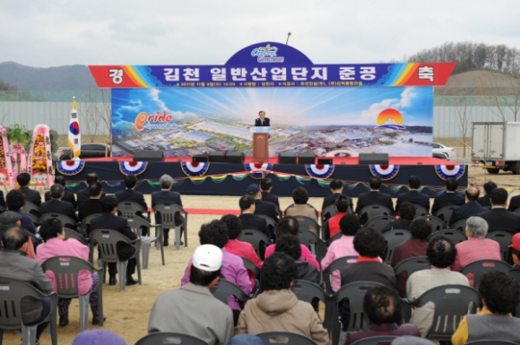 김천시는 기업이 필요로 하는 부족한 산업용지난을 해소하고 신규일자리 창출 및 침체된 지역경제 활성화를 위해 역점사업으로 추진해온 산업단지조성 계획 4,959천㎡(150만평)가운데 제 1단계로 남산리 일원 805천㎡(24만3천평)에 대한 김천1일반산업단지 조성사업 준공식이 9일 박보생 김천시장, 이주석 경북도행정부지사, 이철우 국회의원 및 기관단체장과 지역주민 등 1,500여명이 참석한 가운데 개최됐다.
