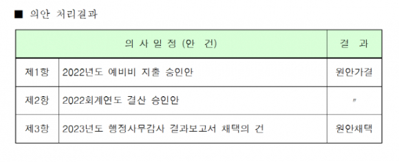 제3차 본회의에서는 '2022년도 예비비 지출 승인안'과 '2022회계연도 결산 승인안'을 의결하고, '2023년 행정사무감사 결과보고서'를 채택했다.