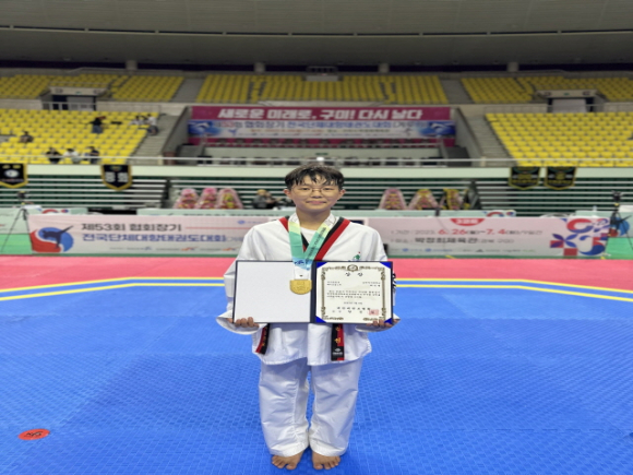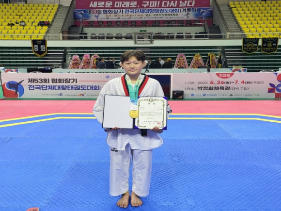 성주여자중학교 태권도 선수들이 6. 26.(월) ~ 7. 4.(화)까지 경상북도 구미시 박정희체육관에서 열리는 제53회 협회장기 전국단체대항태권도대회에 출전해 금메달 2개를 획득하며 종합 우승을 차지했다.