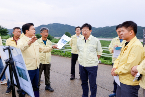 이병환 성주군수는 7월 16일(일) 오전 7시 선남면 소학리 성남배수장에서 열린 집중호우 대처상황 회의를 주재하고, 낙동강 수계 하천구역의 선남면 소학리, 용암면 동락리 일원의 배수장과 수문을 점검했다.