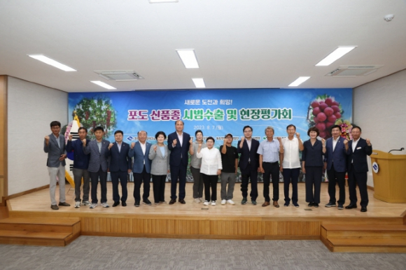 상주시농업기술센터(소장 조인호)는 경상북도농업기술원과 합동으로 ‘경북 육성 포도 신품종 시범수출 및 현장평가회’를 8월 7일(월) 포도 재배 농업인, 수출업체, 도·시군 관계관 등 200여 명이 참석한 가운데 상주시 서상주농협 산지유통센터에서 실시하였다.
