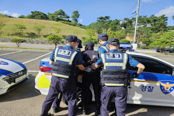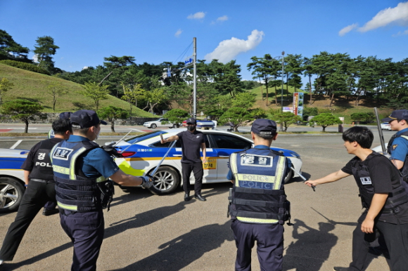 고령경찰서(서장 안중만)는 최근 다중운집장소에서 이상동기 흉기난동 강력범죄가 연이어 발생함에 따라 고령군 대가야박물관 일대에서 현장 경찰관들의 대응력 향상을 위한 흉기난동 모의 훈련을 18일 실시했다.