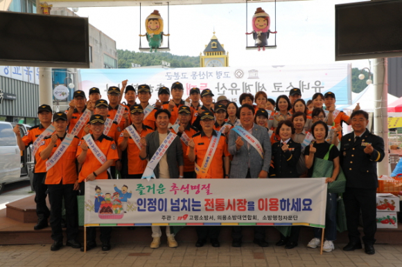 같은 날 오전 11시에는 고령 대가야 전통시장에 방문해 화재 예방 홍보 및 캠페인 등을 실시하고 어려움을 겪고 있는 시장 상인들에게 조금이나마 도움이 되고자 장보기 행사도 가졌다.