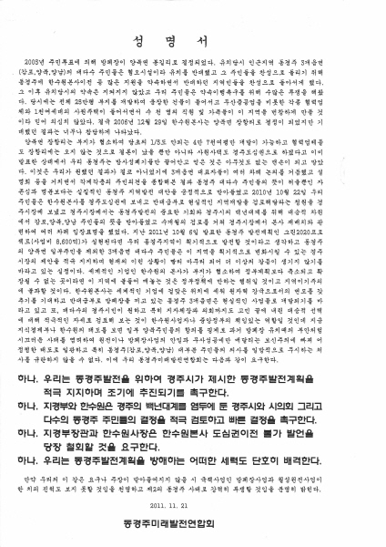 동경주미래발전연합회의 성명서 발표 및 궐기대회