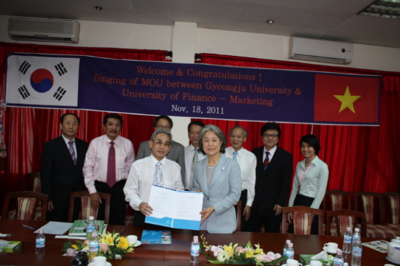 - 베트남 금융-경영대학, 훙 브엉(Hung Vuong)대학, 호치민시립문화대학과 MOU 체결 - 각 대학 한국어학과 개설 및 경주대학교 국제학부에 유학기회 제공 - 경주대학교 7+1해외학기제 및 국제화 교육에 및 한-베트남 우호증진 기여
