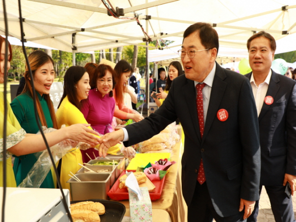 지난15일 경주 황성공원 타임캡슐광장에서 서로의 문화의 다양성이 존중받고 우리는 서로 하나로 공존하는 행복한 글로벌 축제의 장 ‘지구촌 축제 한마당’으로 이주외국인들과 경주시민들이 한마음 한뜻으로 모여 소통과 나눔을 통한 화합의 자리를 가질 수 있었다.